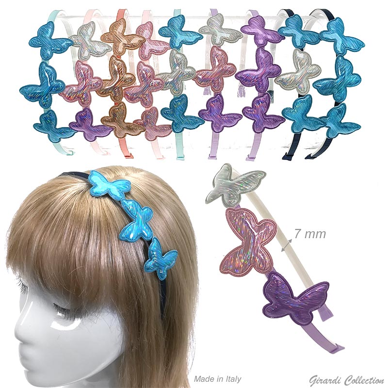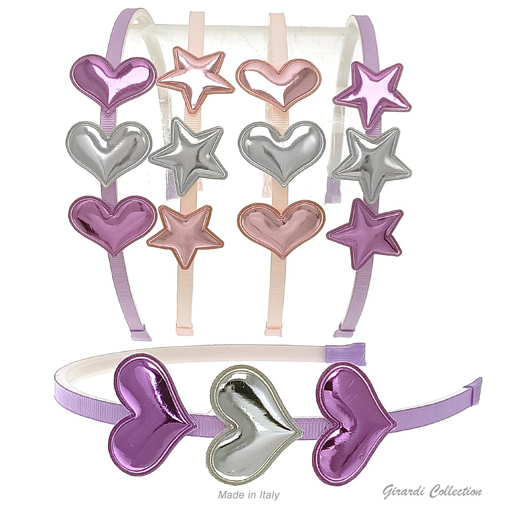 Headband covered with grosgrain ribbon, with 3 hearts or stars metallic colour