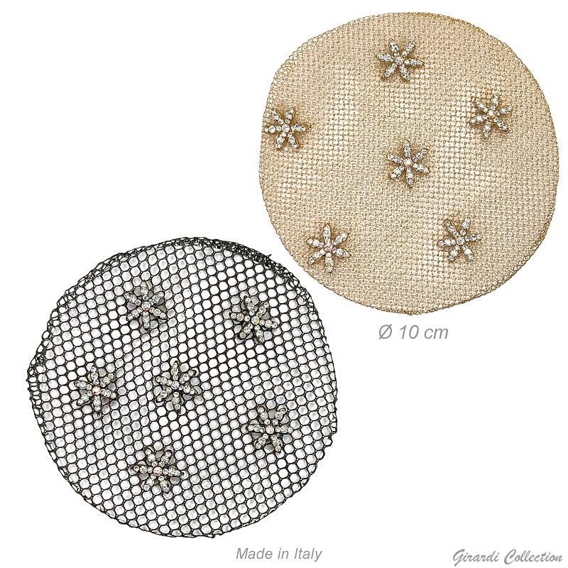 Bun cover net with rhinestone and pearl decorationsDiameter 10 cm approx.Made in Italy