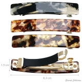Rectangular hair barrette clip with non-slip rubber band in tortoiseshell rhodoid with rhinestones