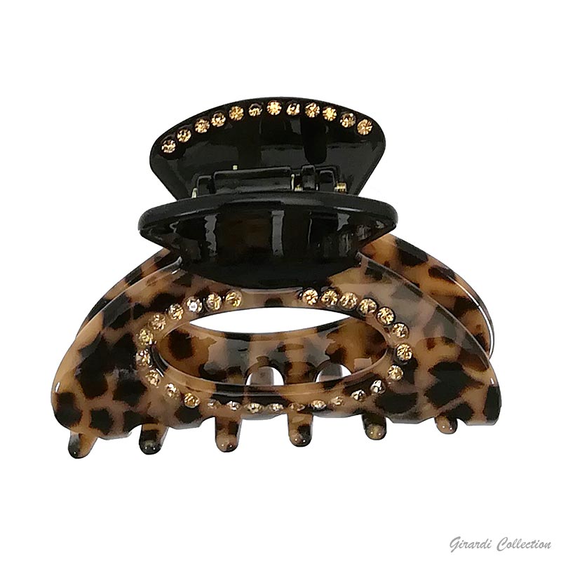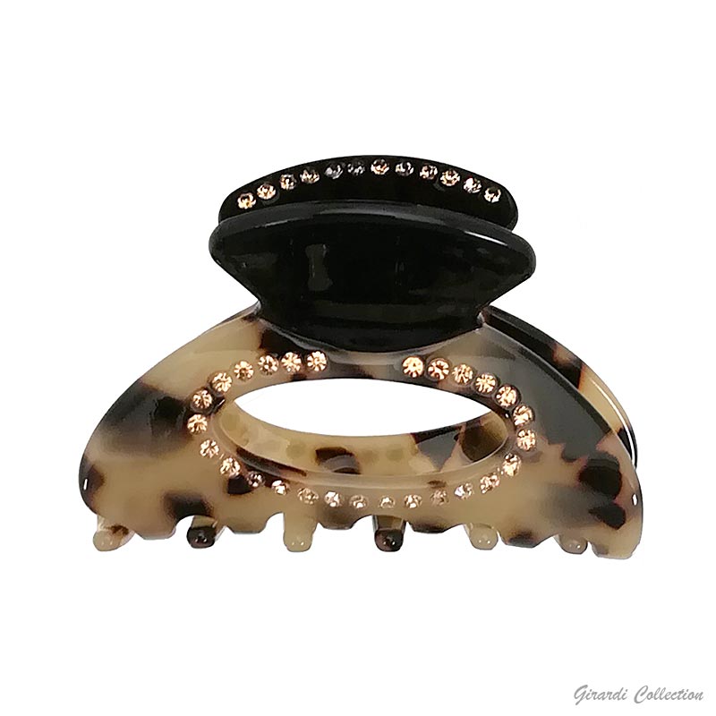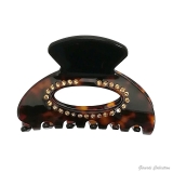 Open oval tortoiseshell acrylic hair claw clip with rhinestones