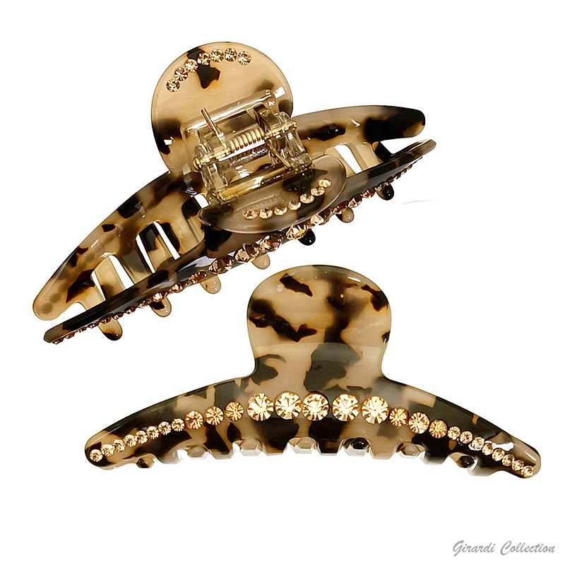 Tortoiseshell acrylic plate hair claw clip with rhinestones