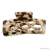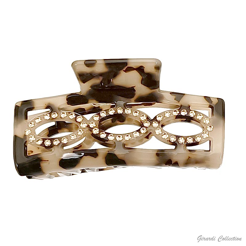 Rectangle hair claw in speckled acrylic sheet with rhinestones