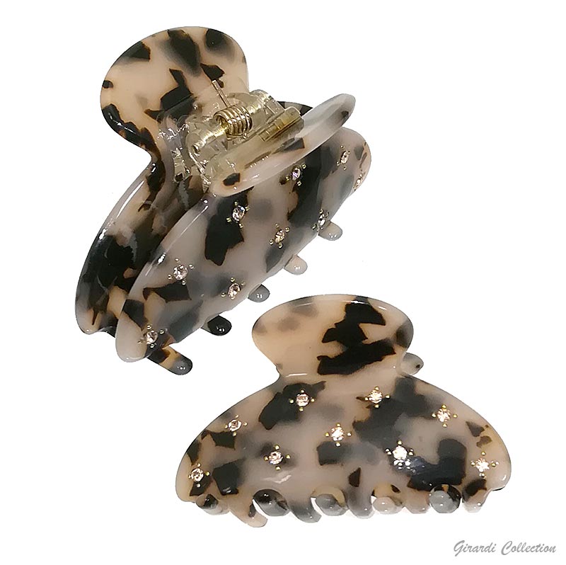 Tortoiseshell oval hair claw acrylic sheet with rhinestones