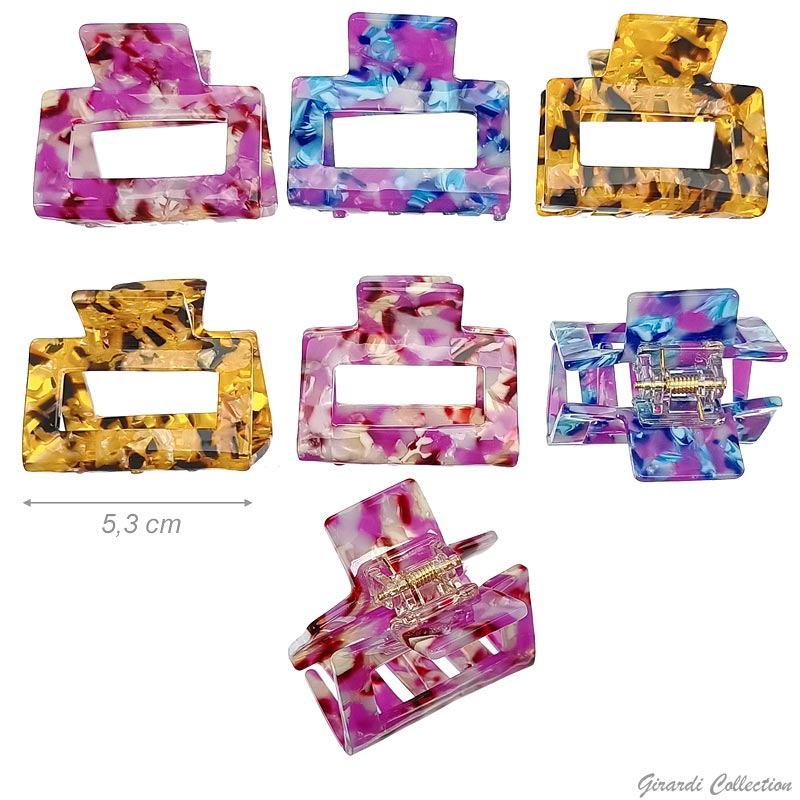 Rectangular tortoiseshell rhodoid hair claw