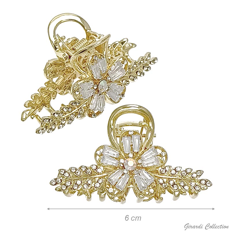Zircon & rhinestone golden metal hair claw