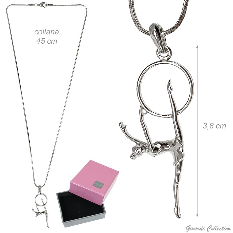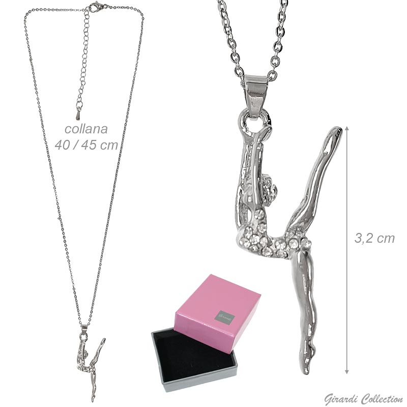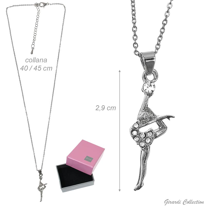 Hypoallergenic metal necklace platinum-plated with rhinestone ball gymnast pendant