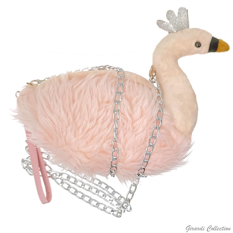 Plush and ecofour swan-shaped shoulder bag zippered pouch