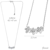 Collana di metallo antiallergico con pendente tris di fiori di zirconi.