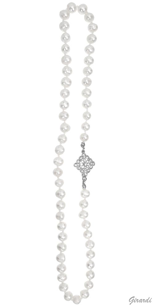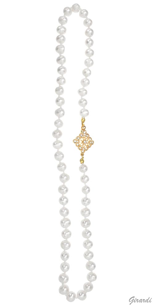 Collana di perle di fiume con nodi e chiusura gioiello rombo in metallo antiallergico e strass
