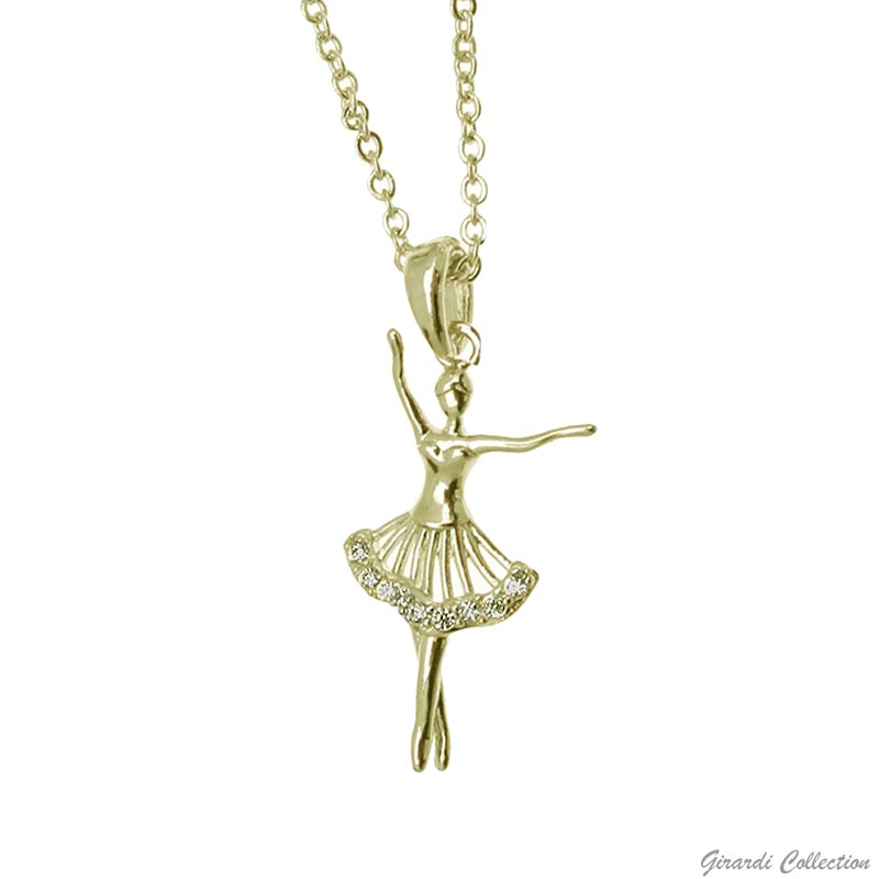 Collana girocollo con base di ottone con pendente ballerina e zirconi.
