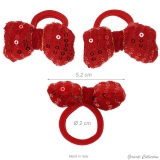 Fermacapelli matic con gommino antiscivolo, decorato con un doppio fiocco in tessuto e paillettes.
