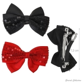 Fermacapelli a scatto matic in metallo con gommino antiscivolo e con fiocco in velluto colorato e paillettes.Lunghezza 6,5 cm circa