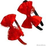 Fermacapelli a scatto con fiocco in velluto e paillettes