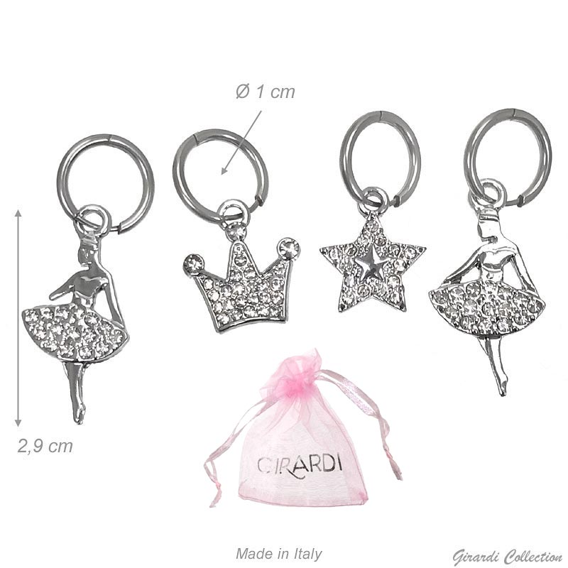 misura ballerina 2,5 cm circa.Diametro anella 1 cm circaConfezione assortita