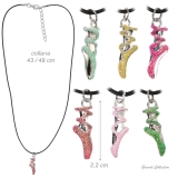 Catena girocollo di bigiotteria, con pendente scarpette ballerina smaltate con strass.
