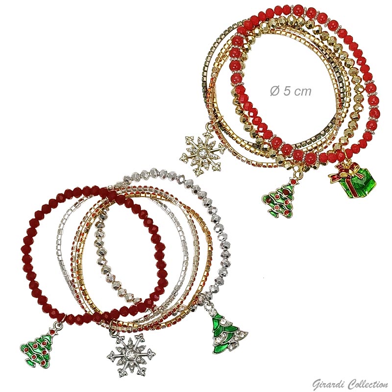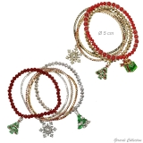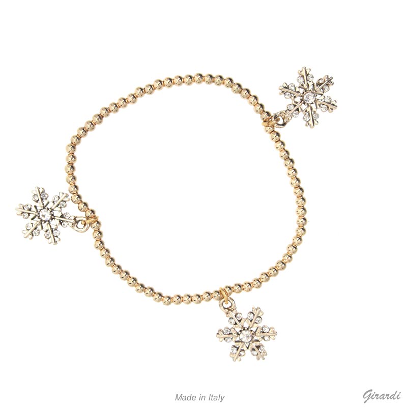 Bracciale elastico in acciaio, con charms a fiocco di neve e strass