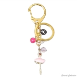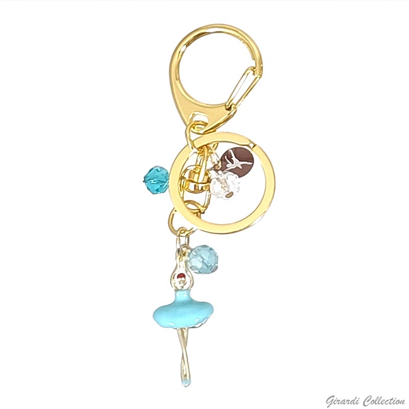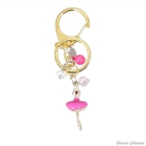Portachiavi in metallo color oro con pendente ballerina smaltata e perline colorate.Lunghezza 10 cm