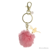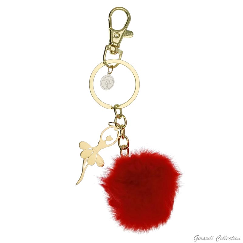 Portachiavi in metallo con pon pon e pendente ballerina in acciaio dorato.
