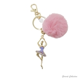 Portachiavi in metallo dorato con pon pon e pendente ballerina smaltata con strass