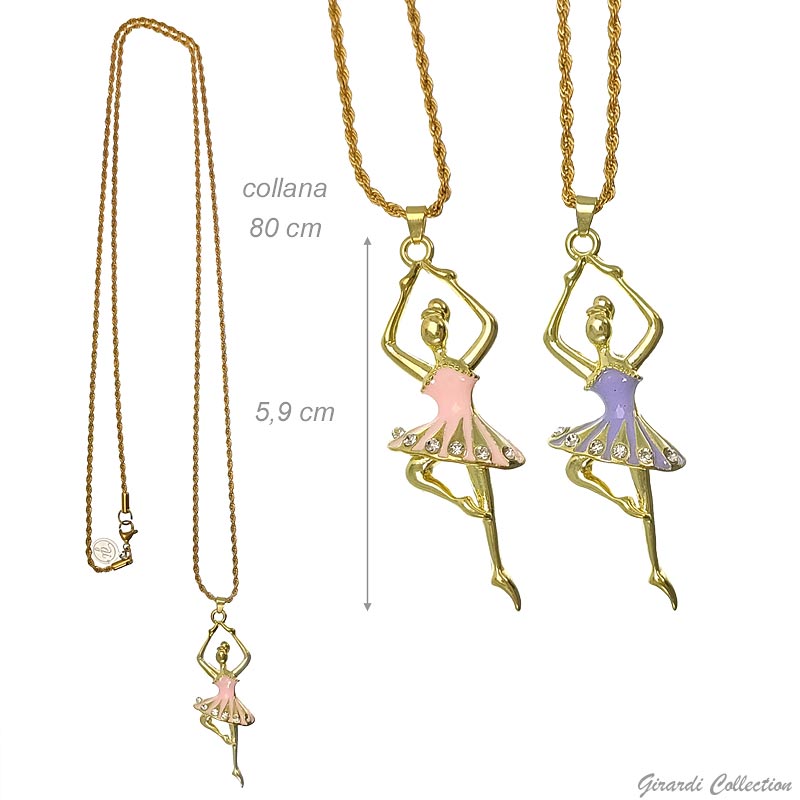 Collana acciaio dorato con ballerina smaltata e strass