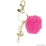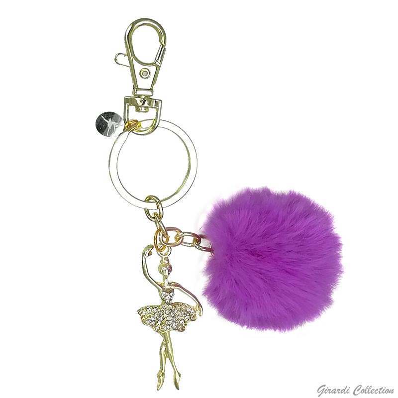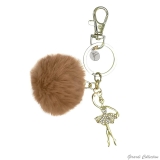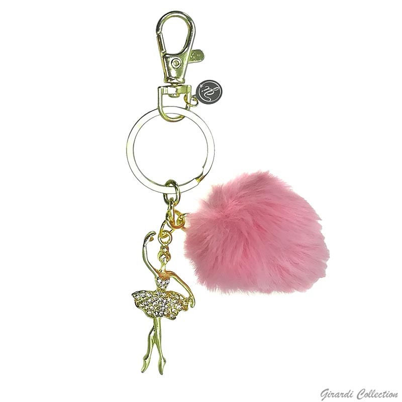 Portachiavi in metallo dorato con pon pon in ecofur e pendente ballerina con strass