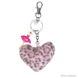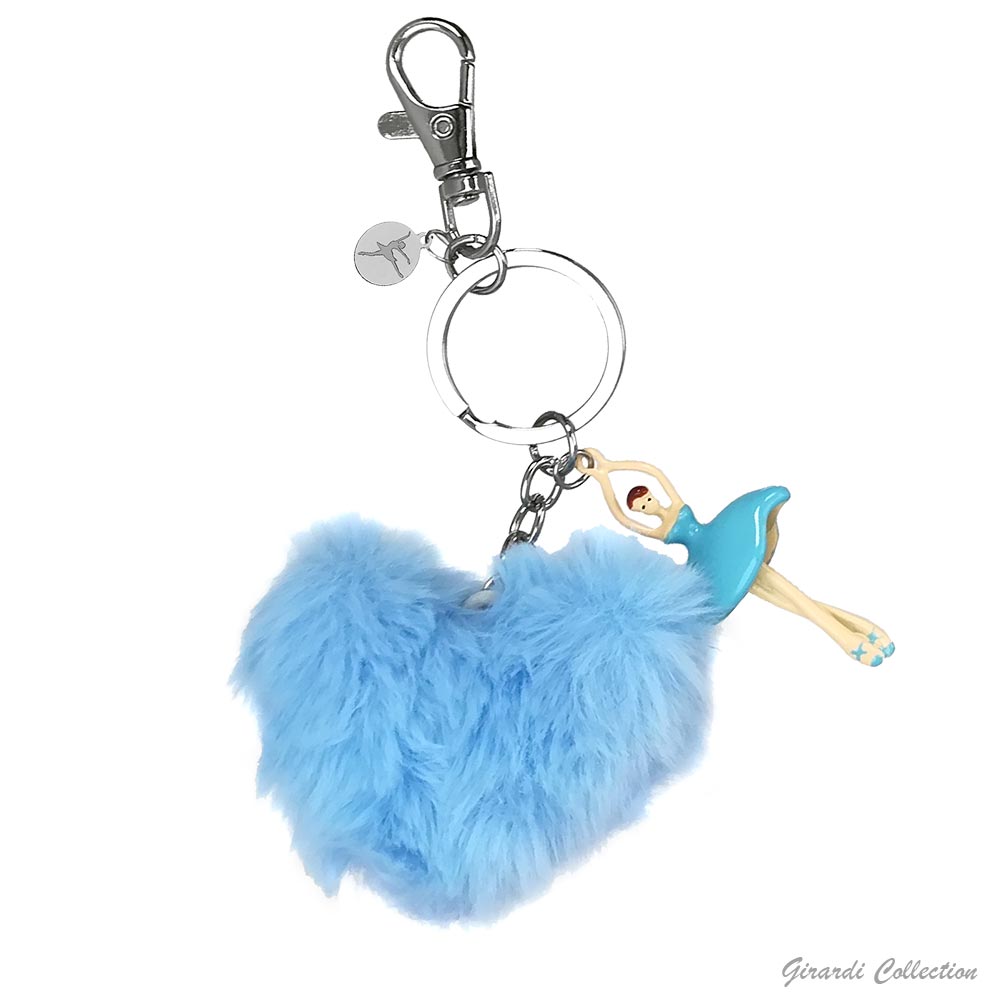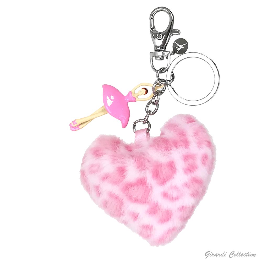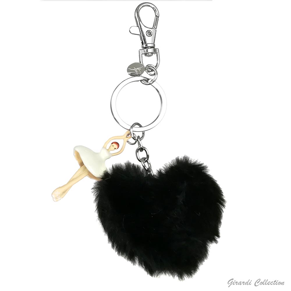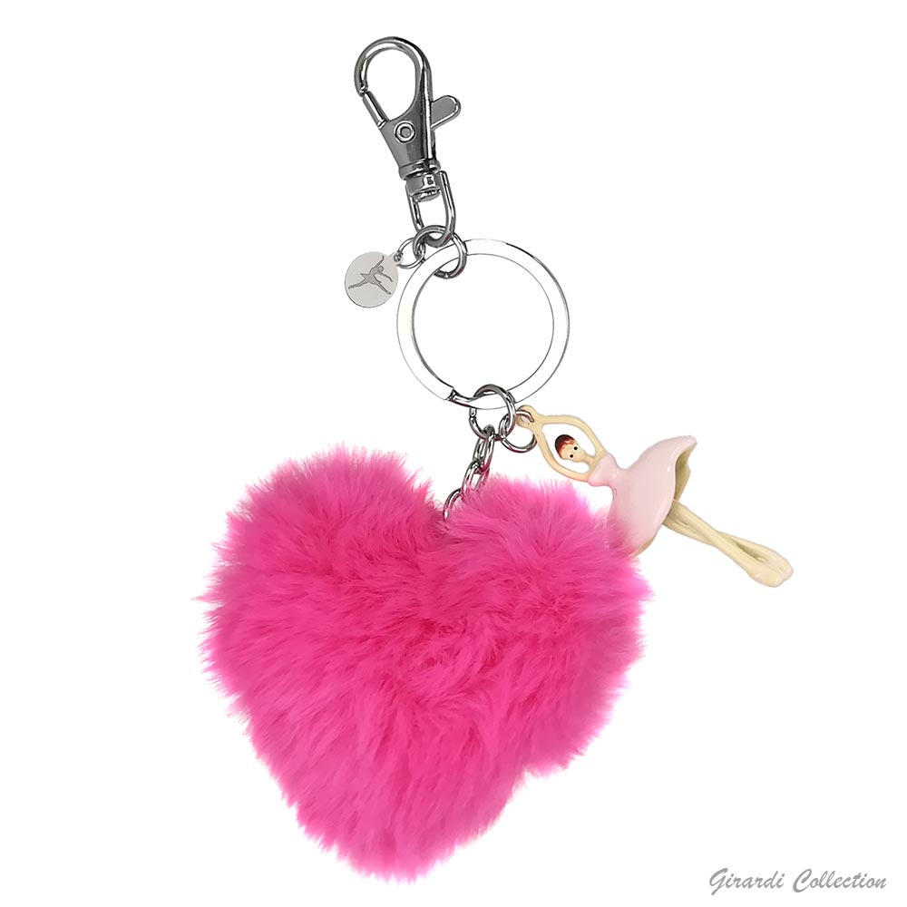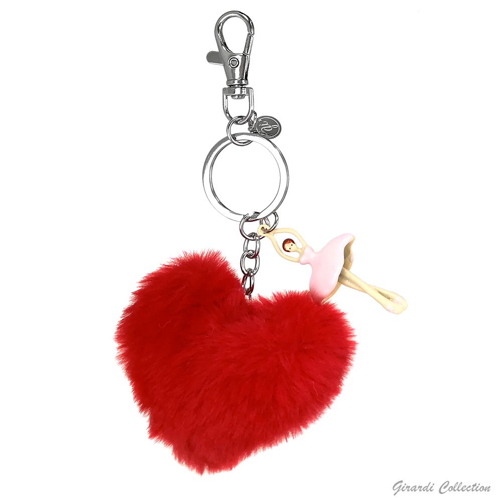 Portachiavi metallo con ballerina smaltata e pon pon a forma di cuore in ecofur