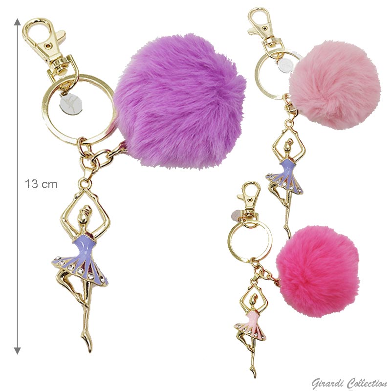 Portachiavi con pon pon e ballerina con strass