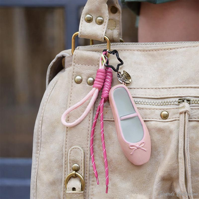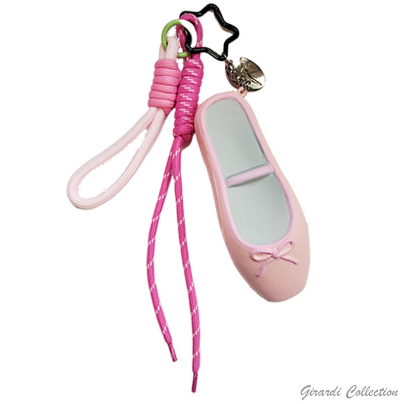 Portachiavi charm da borsa con Squishy antistress Scarpetta Ballerina profumato e laccetti colorati