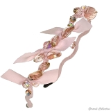 Cerchietto in metallo ondulato, decorato con cristalli colorati, nastri e strass.