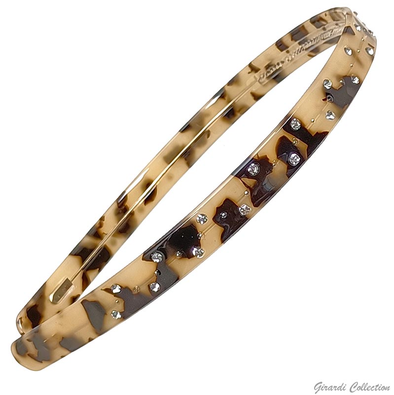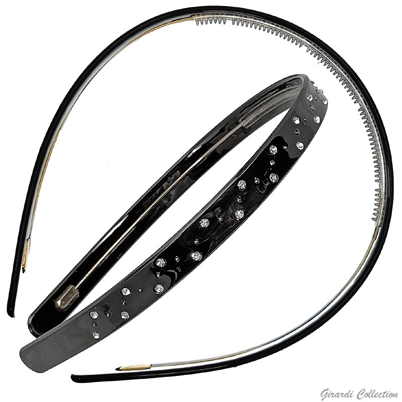 Cerchietto in rodoide maculato e strass con dentini e finitura in metallo anallergico interno per maggiore flessibilità e mantenimento della forma