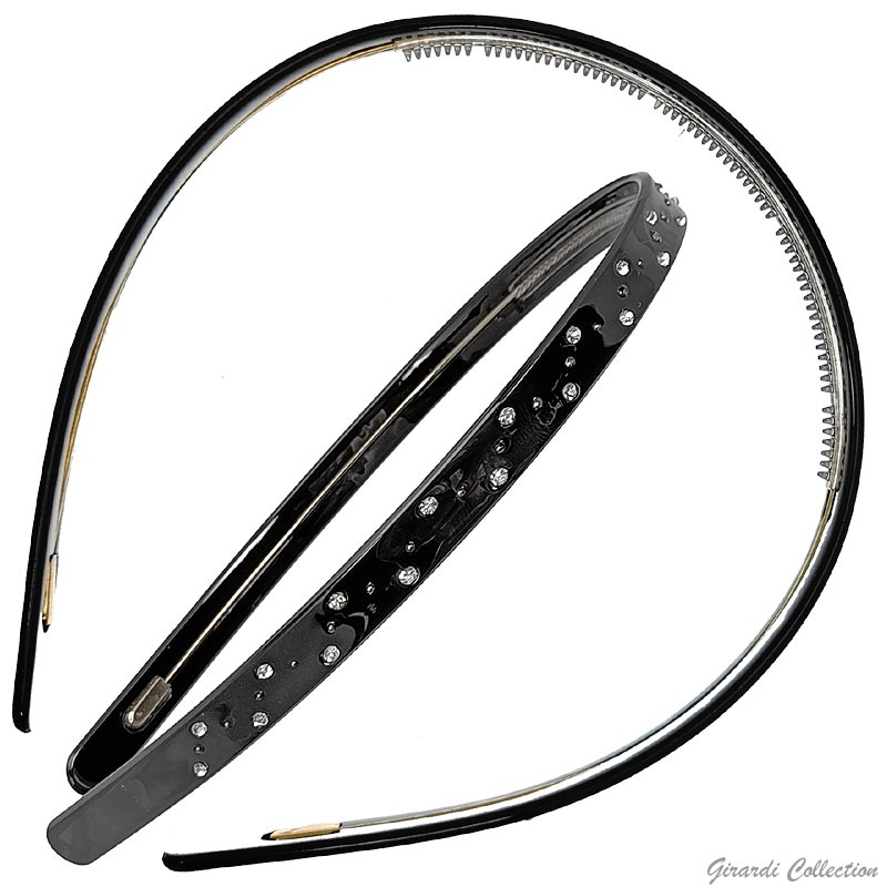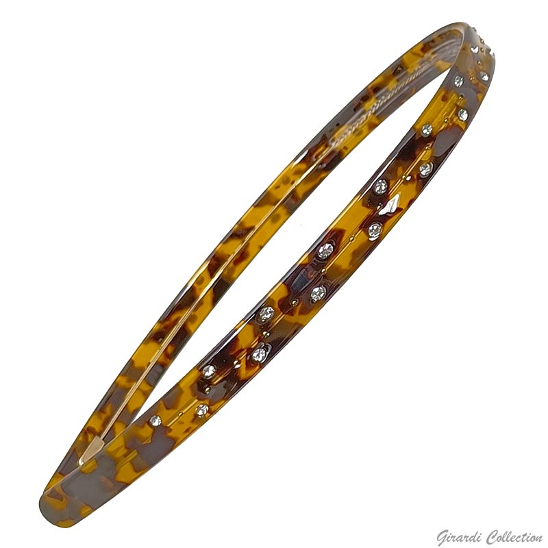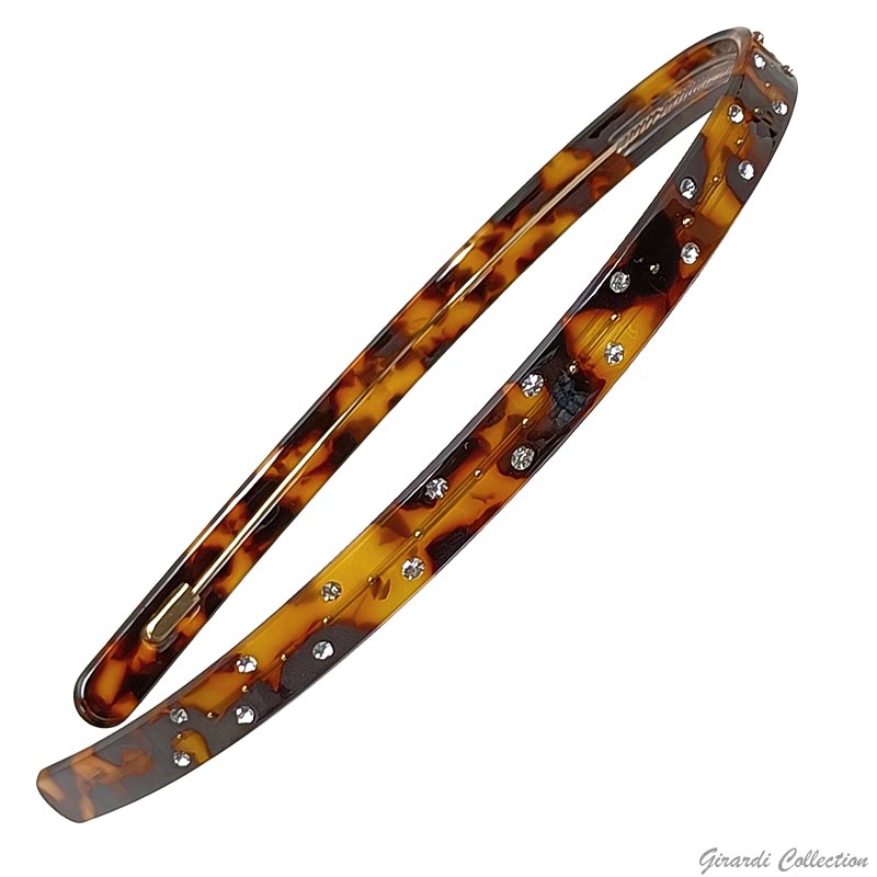 Cerchietto in rodoide maculato e strass con dentini e finitura in metallo anallergico interno per maggiore flessibilità e mantenimento della forma