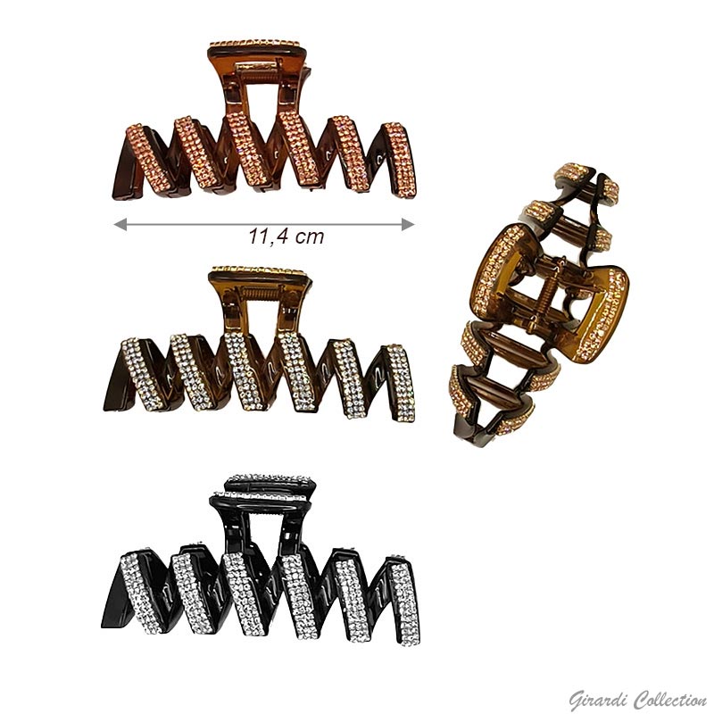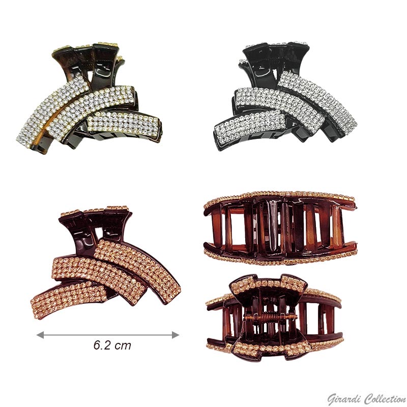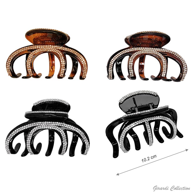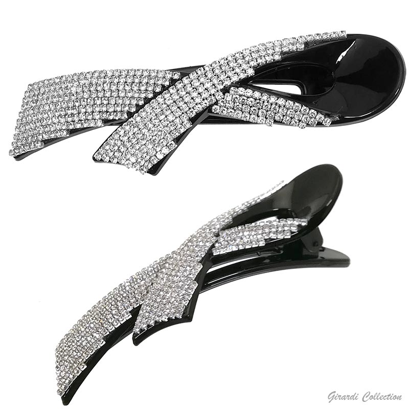 Becco fermacapelli in acetato con base nera o tartarugata e strass bianchi