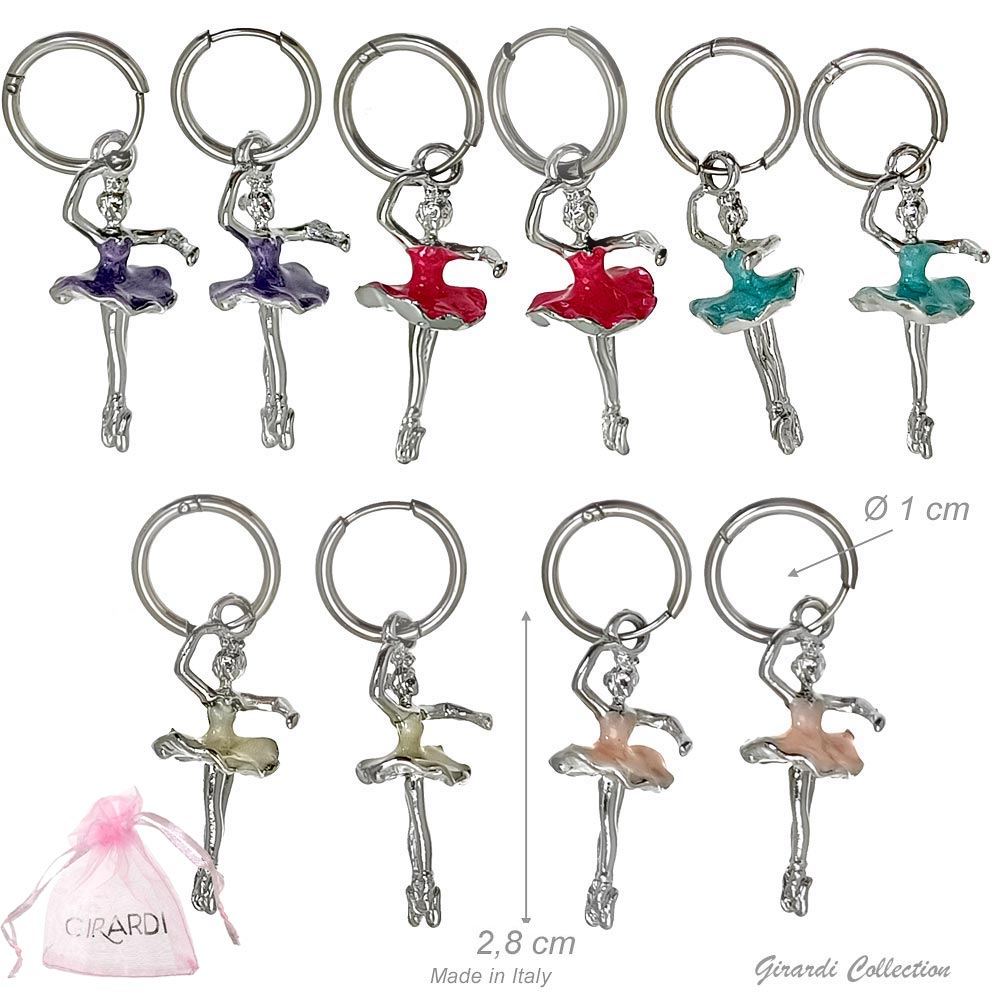 Orecchini ad anella in acciaio Con Ballerina smaltata