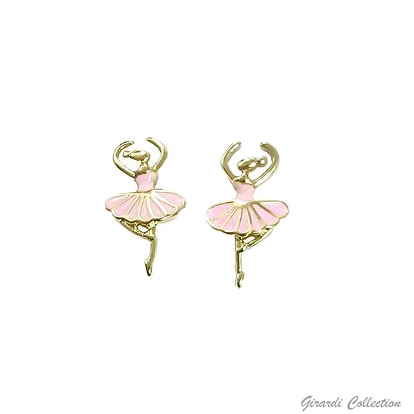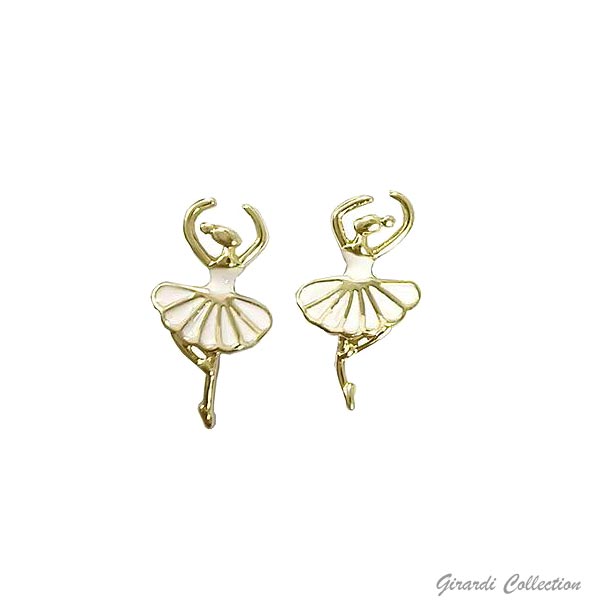 Orecchini ballerina in metallo placcato oro con smalto colorato