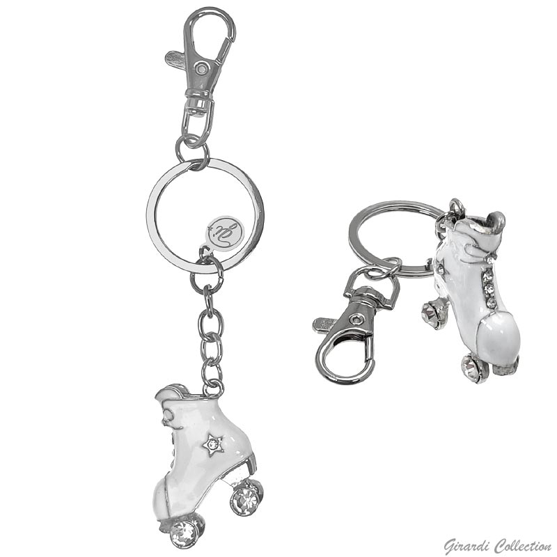 Portachiavi con Moschettone in Metallo e Pattino a Rotelle Smaltato con strassLunghezza portachiave14 cm circa