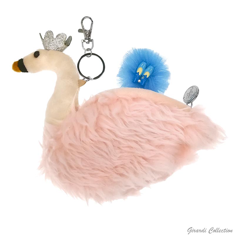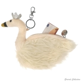 Portachiavi - borsellino con cerniera in peluche ed ecofur a forma di cigno