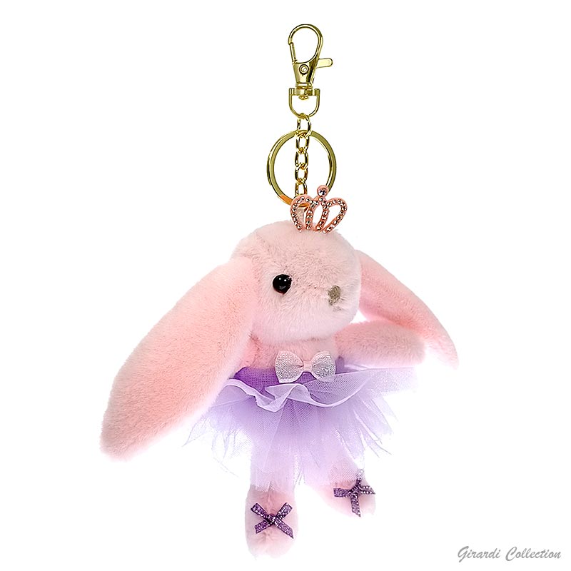 Portachiavi coniglietta ballerina peluche e diadema di strass