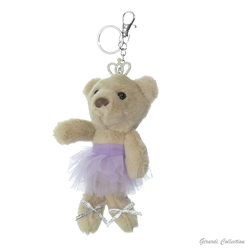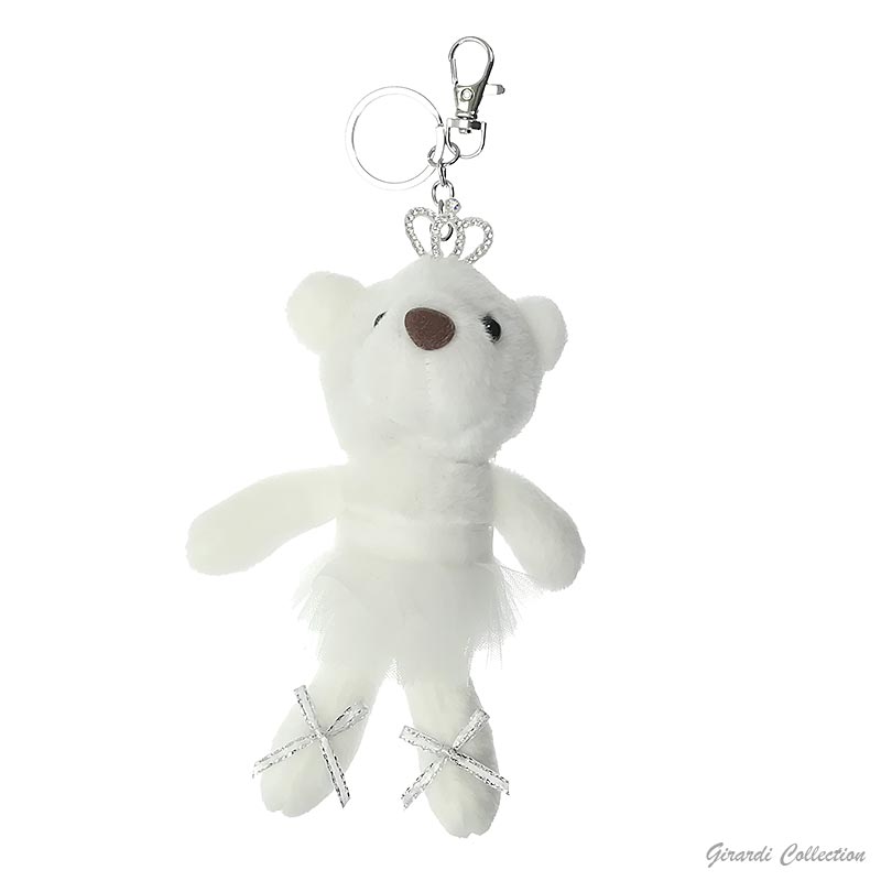 Portachiavi orsacchiotto ballerina in peluche con diadema di strass e tutù in voile