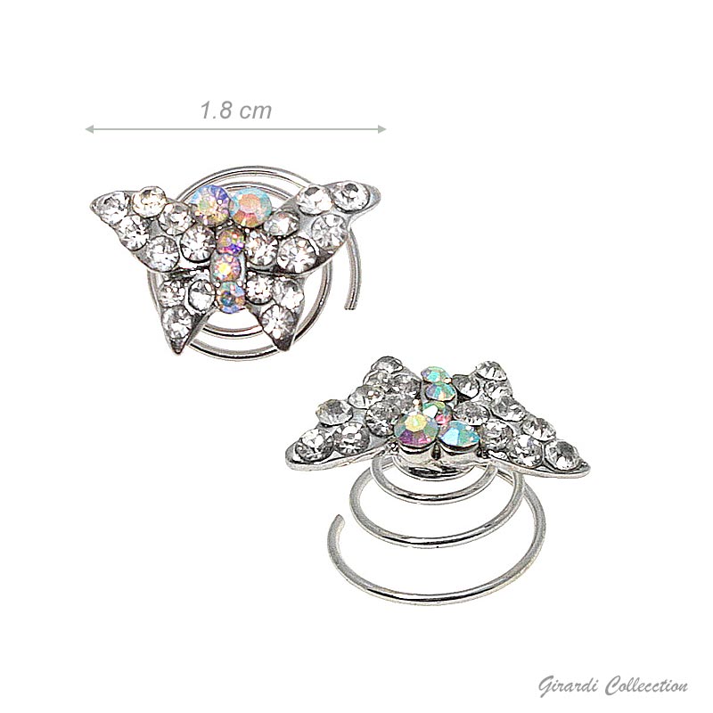 Decorazione per i Capelli a forma di Spirale in Metallo con farfalla con pavè di strass bianco e borealeMisura 1.8 cm circa